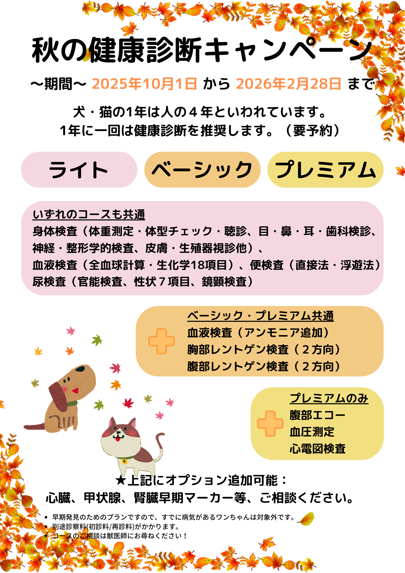 当院のドッグドック・キャットドックは、病気の芽を小さいうちに見つけ出し、「いつもの元気」を守るための未来への投資です。